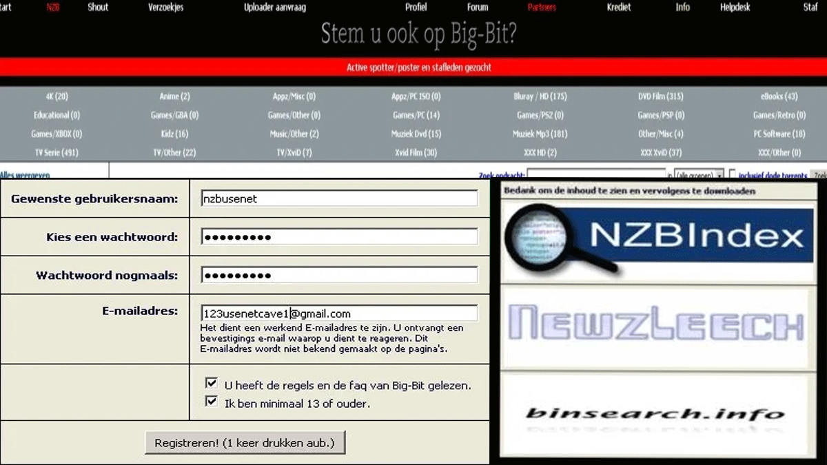Big-bit.org is een Nederlandse Usenet en Torrent community. Hier worden hier films en series gepost, met Nederlandse ondertiteling. Maar je kan hier ook boeken en software vinden. Al is dit aanbod, wel heel erg mager.