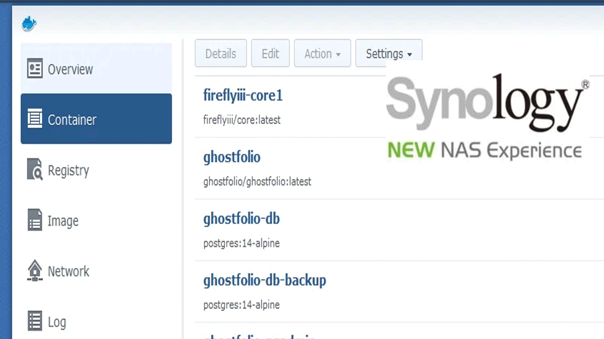 Nadat je een container hebt gemaakt, kan je deze beheren vanuit de Docker-toepassing op uw Synology-apparaat. Je kunt de status van de container controleren, de container starten en stoppen, de container verwijderen en meer.