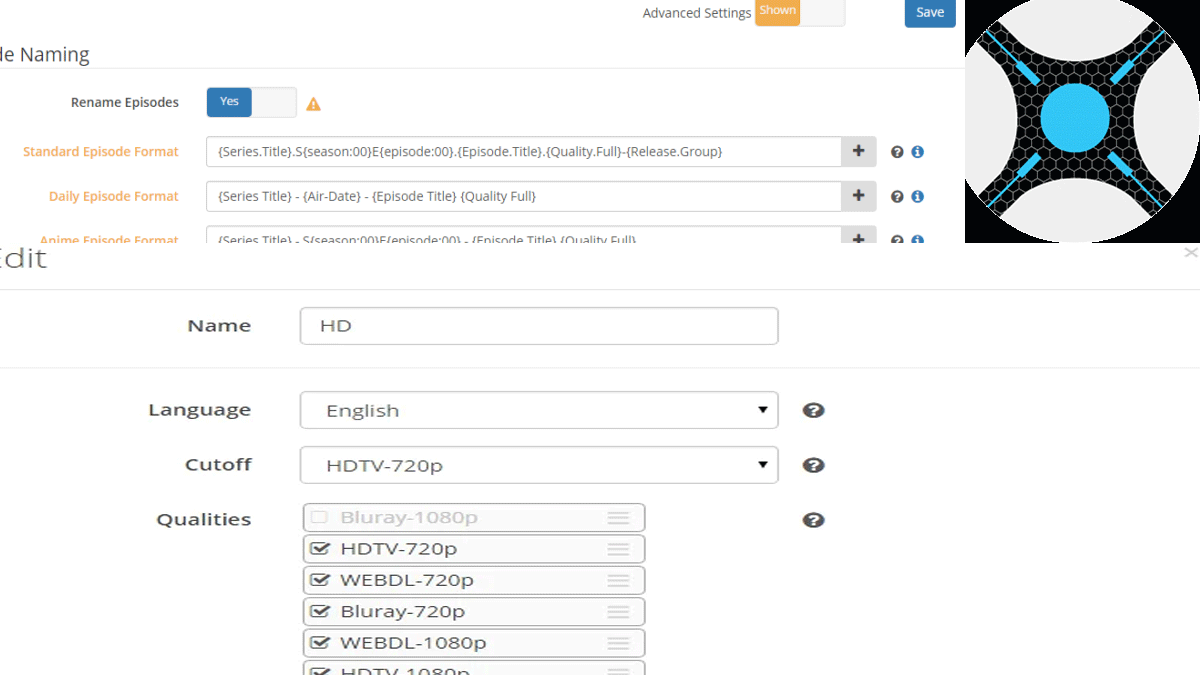 Standard Episode Format “{Series.Title}. SE{season:00}.{ Episode.Title}{episode:00}{Quality.Full}-{Release.Group}”