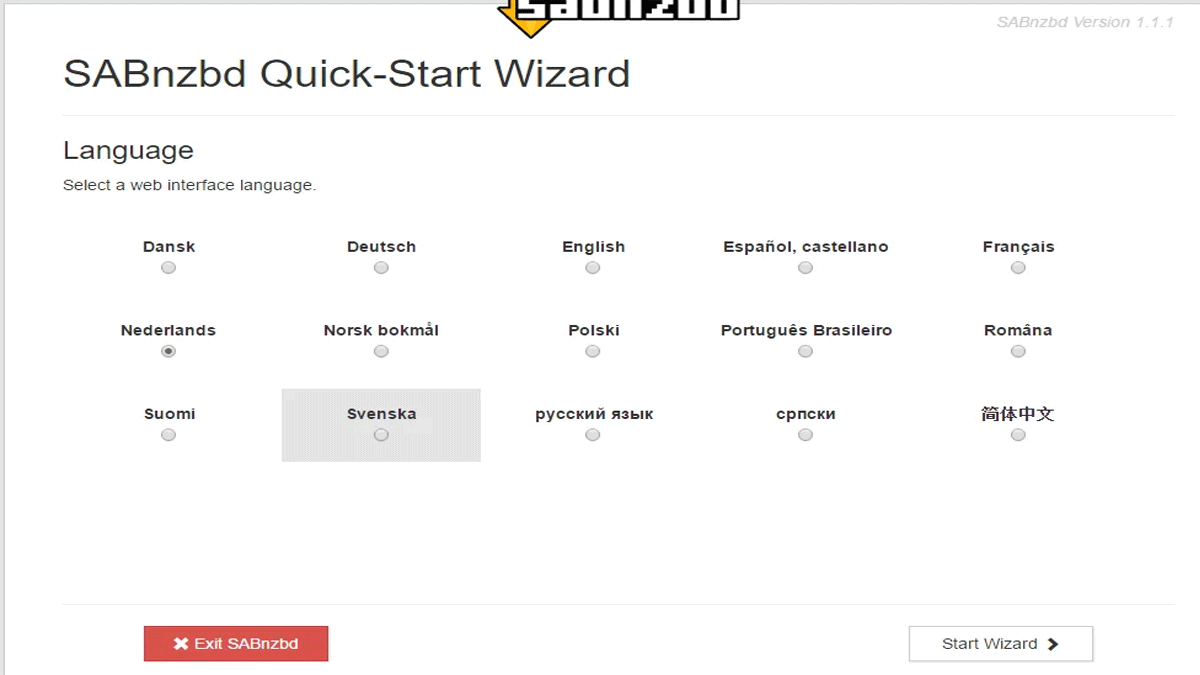 If it’s your first time starting SABNZBD. Then you get an installation wizard. To enter the basic data.