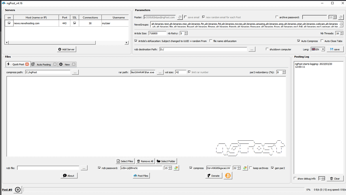 Now click on Post files. Upload has started to the newsgroups with NG post.
