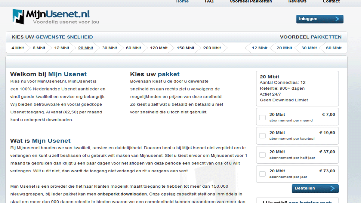 Mijnusenet.nl is een Usenet provider die het toestaat dat jij je account deelt met anderen. Ze bieden ook voordeel pakketten aan. Deze pakketten zijn beschikbaar tussen 0:00 en 12:00 of 02:00 en 14:00 of 04:00 en 16:00.