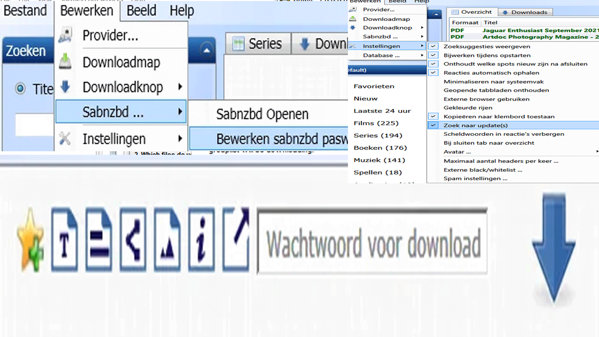 Als je usenet download programma niet overweg kan met een wachtwoord wat in het NZB bestand is meegegeven. Dan kan je zelf het wachtwoord uit het NZB bestand halen. Dit is een vrij simpel actie.