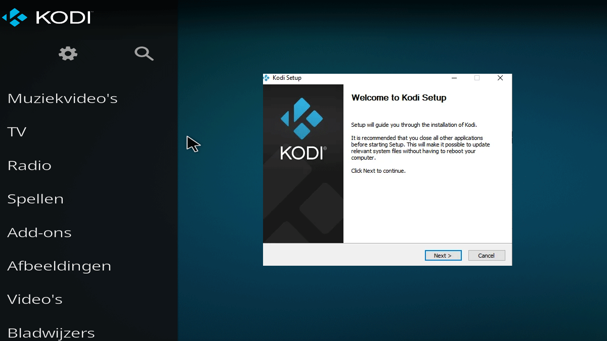 Als alles goed is gegaan start nu Kodi, als je de computer opnieuw start.