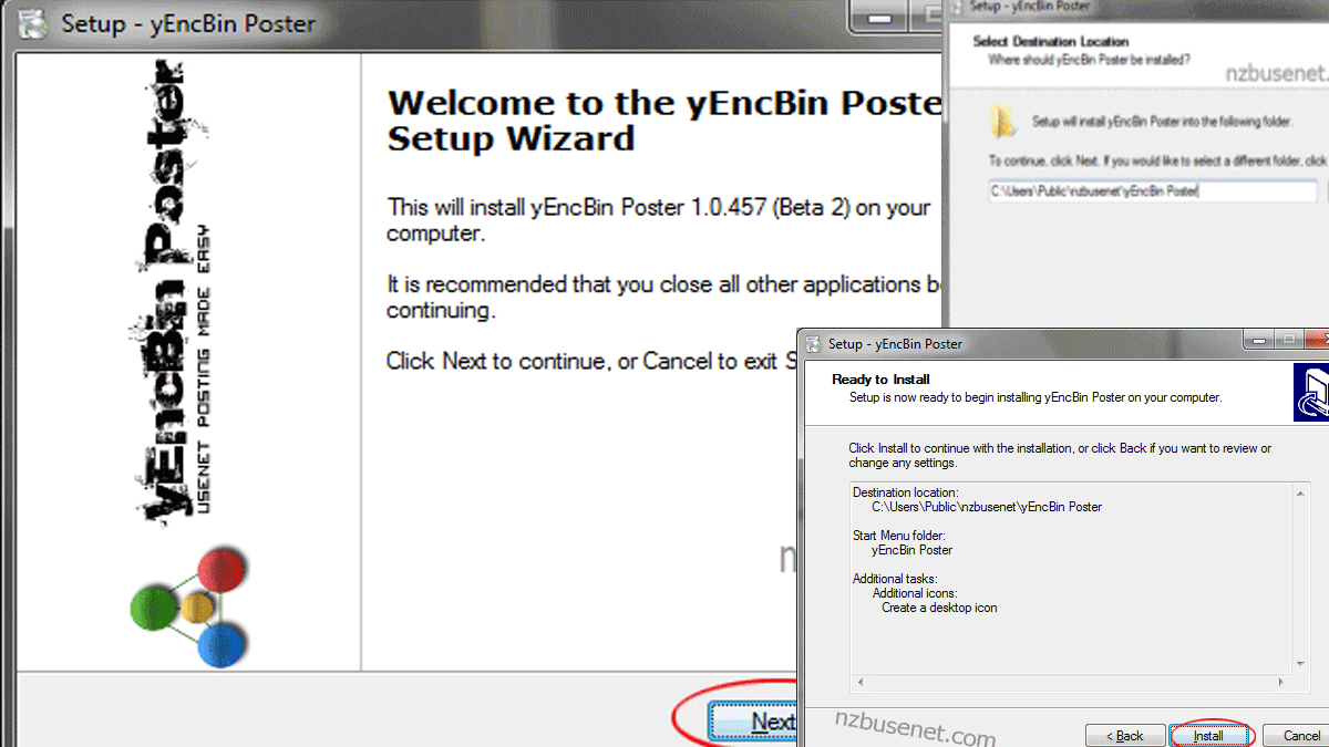 Geef hier aan waar yEncBin Poster moet worden geïnstalleerd. Druk vervolgens op Next.